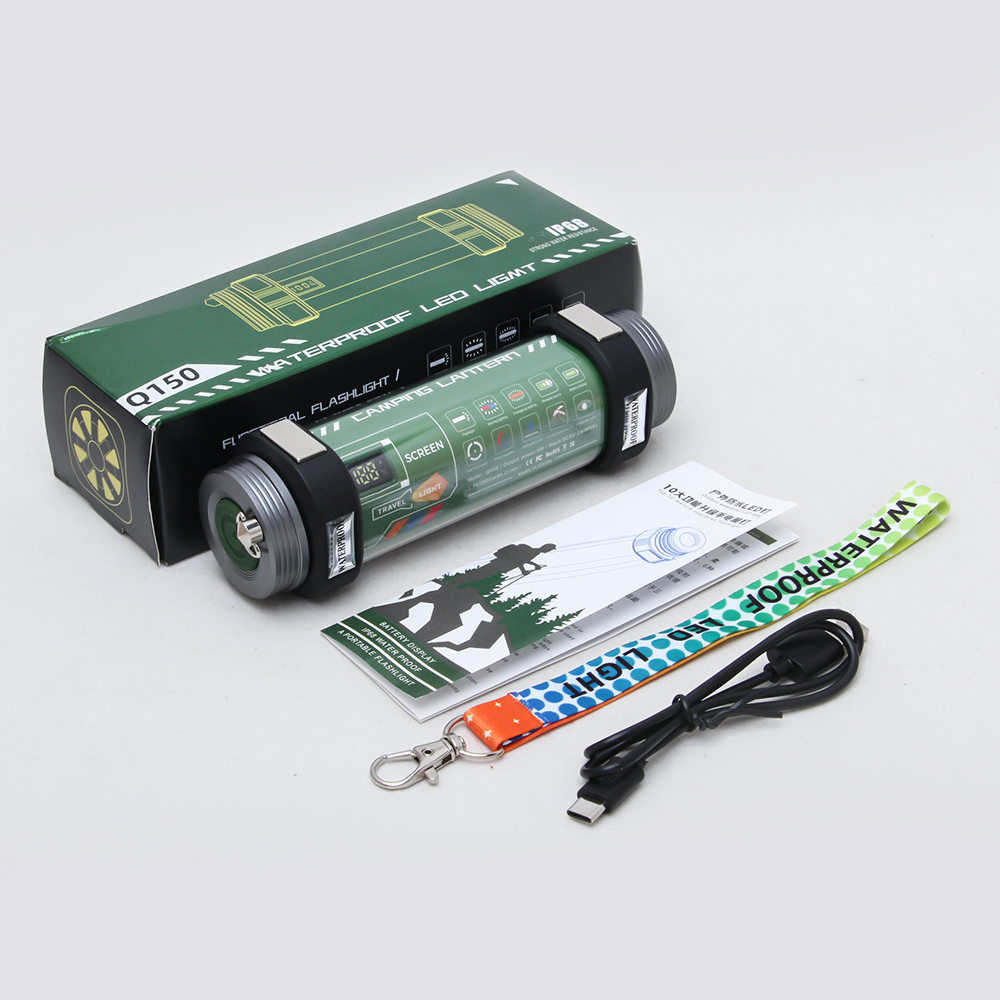 Waterproof Camping lamp1:Function: A:flashlight, B. Flood light 1-2-3 C:Yellow light D: Alarm light2.Type C,USB,5V-2A,can be Power bank3:With magnet,it is covenient to hold